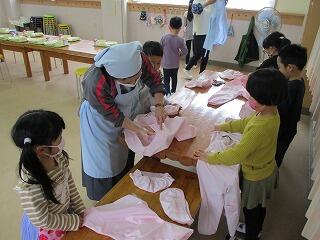 「自分でできることが増えるように・・・。」「命を大切に・・・。」「お友達と仲良く、元気に・・・。」というお祝いの言葉に一つ一つうなずきながら、目をキラキラさせて聞いていました。