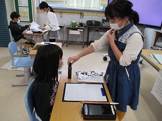 2ねんせいの今日のめあては、「1年生にタブレットのつかいかたをやさしくおしえよう!!」というもの。自分たちのことをしながらしっかり教えることができていました。