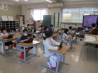 今日の業前は、Tタイムと称して全校でタブレットの使い方を学習しました。
