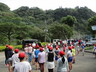 カニの放流の後、日之影町教育委員会主催による通学路点検が行われました。