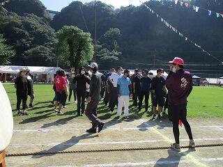 保護者の方々が少しでも盛り上げようと、飛び入り参加の綱引きを考案。