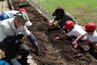 最後は、うねを作ってくださったり、つるを切って準備していただいたり、たくさんお世話をしていただいたお礼を言って、いもほり終了となりました。