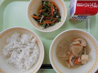 給食では、あったか~い鶏肉のみそ煮をいただき、ホッとする時間を過ごしました絵文字:笑顔