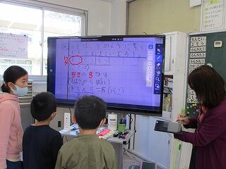 今日は、基準量が後に示された問題を、かけ算の式に表して九九を使って解決する授業でした。