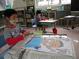 子どもたちは話の流れをつかみながら、想像力豊かに吹き出しを書いていきました。