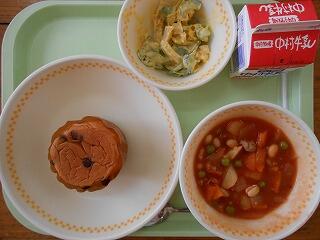 今日のメニューは、学校で収穫したジャガイモを使ったポテトサラダです。