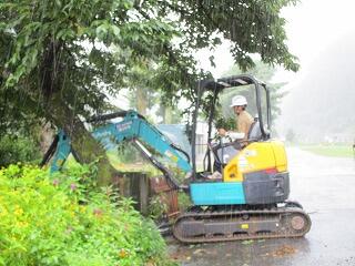環境整備部長の 拔屋さんが重機で草捨て場の掃除をしてくださっていたのです。