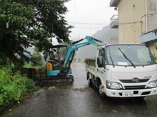 激しい雨がたたきつける中の作業に頭が下がりました。