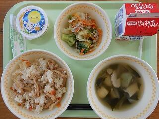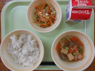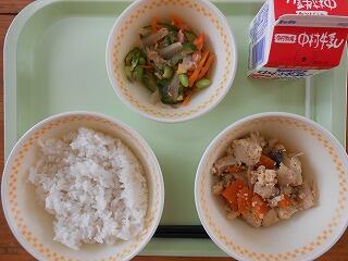 今日の五目汁には、【鶏肉・人参・大根・ごぼう・干ししいたけ・ねぎ・油揚げ】が入っていました