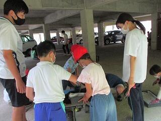 壊れた傘を持ち寄って、エコバッグ作りにチャレンジする5・6年生!!