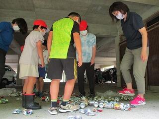 地域の方々の御協力で、たくさん空き缶が集まりました。
