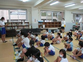 給食時間は、久しぶりに中嶋先生の読み聞かせに大喜び。