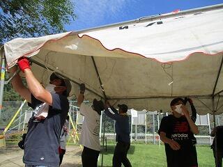 熱中症も心配なところですが、感染予防対策としてマスクを着用したまま、三密に十分注意しながら1回目の練習を終えました。