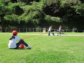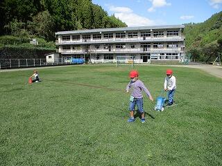 気持ちよい秋晴れの中、1・2年生が長縄の練習です。