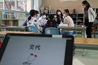 張り切って職員室を訪れた3・4年生。