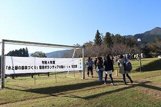 その後は、渓谷祭り会場に移り、つつじの苗木200本を、作成したメッセージカードと一緒に配布しました。