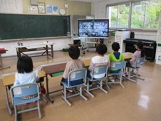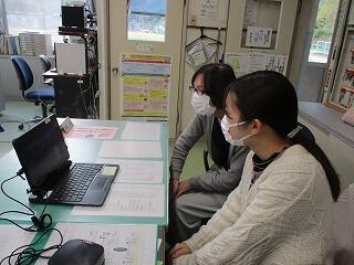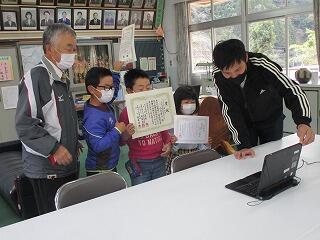総合的な学習の時間で、日之影の森林について学んでいる子どもたち。