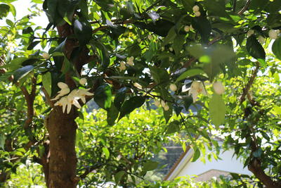ゆずの花が咲いていました。