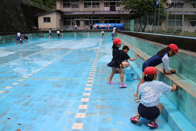 そして、こちらは子ども達によるプール掃除の様子