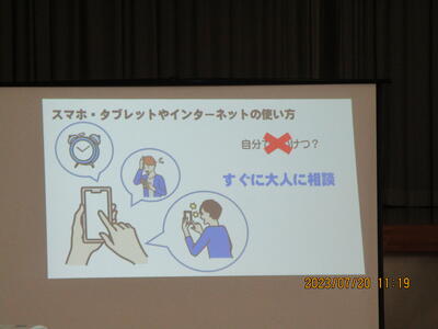 特に夏休みについては、①生活リズムを大切に ②限られた時間を大切に ③命を大切に(ルールを守る大切さ)の3点についてお話があり子ども達は、真剣に話を聞いていました。
