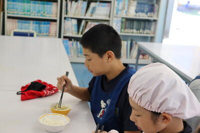 5,6年生が家庭科の時間、ご飯を炊き、お味噌汁を作りました。お味噌汁は、健康的で体に優しい味に仕上がっていました。ご飯も上手に炊いていました。