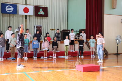 9月を振り返り、運動会では一人一人がよくがんばり、地域の方々にも喜んでいただいた。10月は「学校と地域をつなぐ音楽祭」に向け、みんなでがんばりましょう!とお話がありました。また、「自分の目標」をもって日々過ごすことの大切さについてもお話がありました。