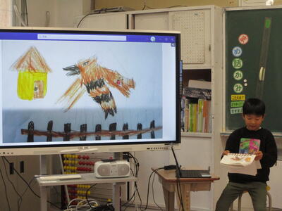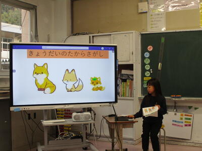 2年生が国語の時間に書いたお話を発表し、1、3,4年生、先生方が聞きました。また、発表後は感想を共有しました。