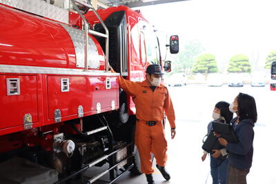 消防署では、火事や事故にすばやく対応するための消防署の施設や設備の工夫、仕事の内容について学習しました。