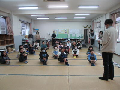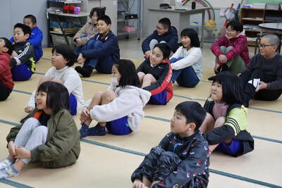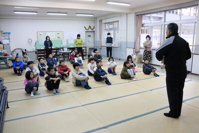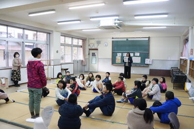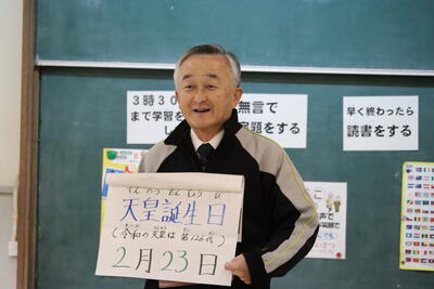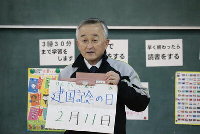 「学習発表会をがんばったこと、今後、次の目標をもって日々がんばること」それから、1年間で16回ある「祝日」についてもお話があり、特に2月にある「建国記念の日」と「天皇誕生日」についてわかりやすく説明をしていただきました。
