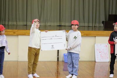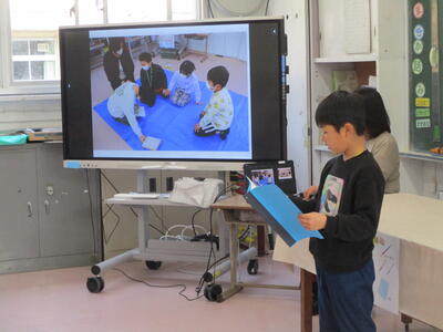 1年生は「どうぶつの赤ちゃん」2年生は「楽しかったこと」について発表しました。