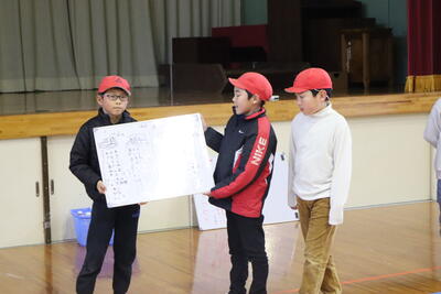 地区児童集会があり、まず、登校の仕方やあいさつについて振り返りをしました。次に、新年度の登校班について話合いをもち、班長が決まり、4月から入学する1年生の所属班についても確認が行われました。