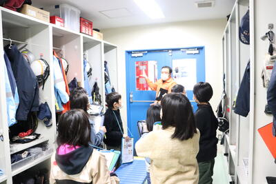 消防署では、火事や事故にすばやく対応するための消防署の施設や設備の工夫、仕事の内容について学習しました。