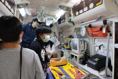 また、警察署では、警察官が地域の安心・安全な生活を守るために、日々どのような仕事をされているのか、仕事内容や警察官の装備品など説明を聞いた後、パトカーやバイクの乗車体験もさせてもらいました。