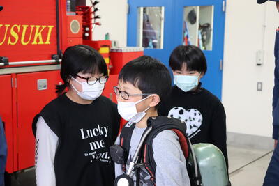日之影町内の3年生が合同で、消防署と警察署を見学しました。