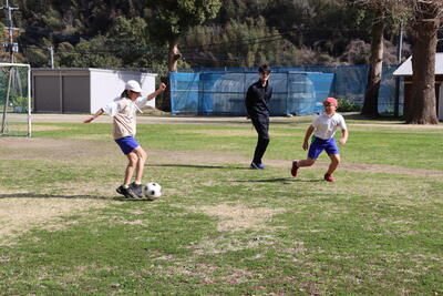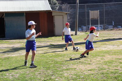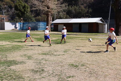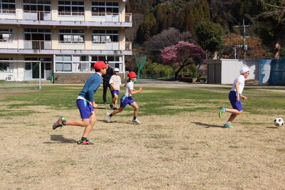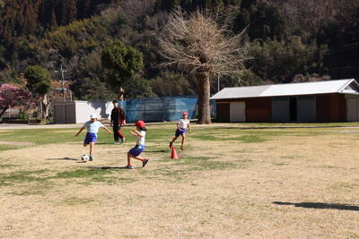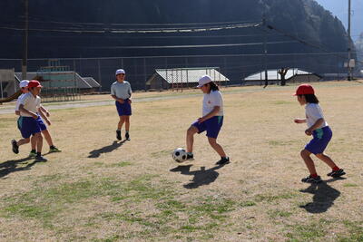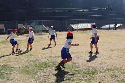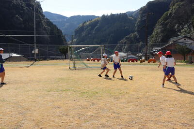 3,4年生が運動場でサッカーをしました。