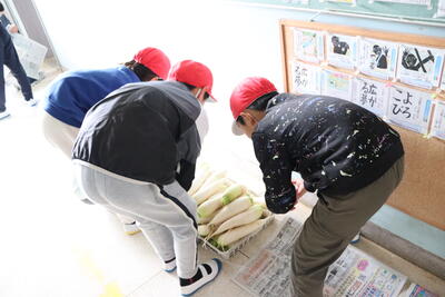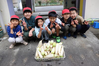 1,2年生が大根を収穫しました!