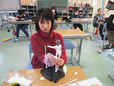 未来の自分の姿を想像し,紙粘土を使って立体的に表現する活動を行っていました。制作しているものは何か?子ども達にたずねてみると「漫画家」「小説家」「動物博士」等と教えてくれました。