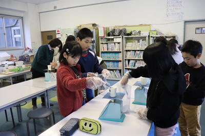 クラブ活動の時間、子ども達で話し合って決めた「バスボム」を作りました!