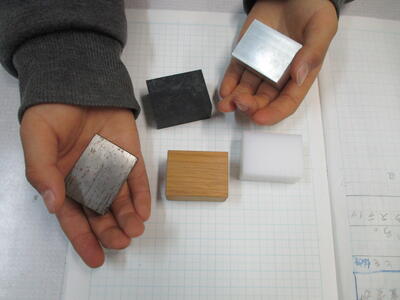 同じ体積でも、物の種類によって重さは違うことを学びました。