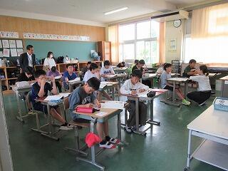 午前中は各クラスの授業参観がありました。みんな、いつも通り、一生懸命に学習に取り組んでいました。教育委員会の先生方も、たくさん褒めてくださいました。