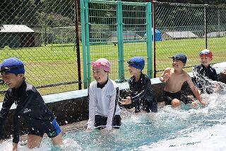 18日(水)、ついに、3・4年生もプール開きができました。2・5・6年生に1日遅れてのプール開きでしたので、3・4年生のわくわく感は最高潮でした。