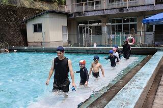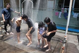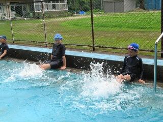 1年ぶりのシャワーでは、冷たいシャワーも何のその!笑顔いっぱいでした。水かけごっこに始まり、クラゲ浮き、だるま浮き、水中ジャンケン、水中あっち向いてホイ、泳いでみる・・・楽しい水慣れがたくさんできました。