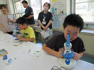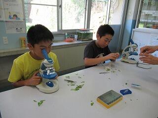 6年生は、理科で植物の「気孔」の学習をしました。自分でプレパラートを作り、顕微鏡で観察しました。気孔は唇のような、小豆のような形をしていました。