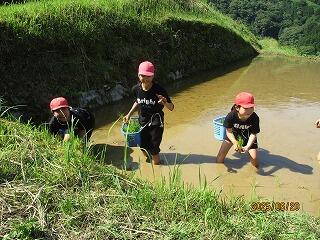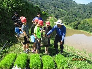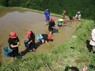 田んぼ一面に植え終わり、「上手に植えられたね。」と褒められました。今日の田植えでお世話になった若杉さん、山口さん、ありがとうございました。