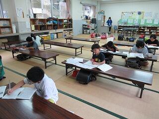 学校の授業が終わると、子どもたちは放課後子ども教室に向かいます。放課後子ども教室は、日之影小学校のふれあいルームで行われます。