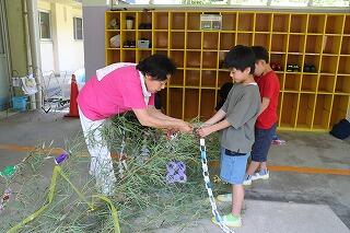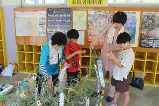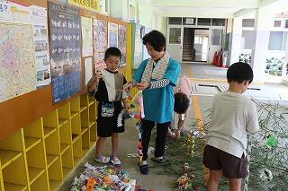 3時間目・・・2年生が作っておいた飾りと地域の方が持って来てくださった飾りをみんなで笹竹に付けていきました。全校みんなの願いごとと先生方の願いごとを書いた短冊も飾りました。