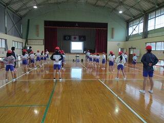 日之影小は、朝のボランティア活動が終わると、町内を流れる放送に合わせてみんなでラジオ体操をします。