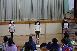 その後は、1年生は国語で学習したどうぶつクイズを一人一人披露しました。