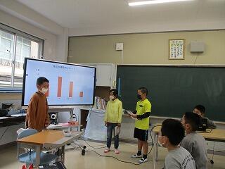 4年生は、発表①でアンケートを取りながら自分たちの生活をふりかえるというもの。