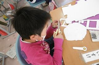まずは、1・2年生教室を訪ねてみると・・・。図工の時間でした。